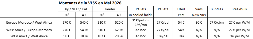 Since January 1, 2020, the Very Low Sulphur Surcharge (VLSS) applicable to all types of shipments (containers, pallets, roro, breakbulk) covers the increase in fuel costs used for international shipping (VLSFO) in accordance with IMO 2020 regulation.